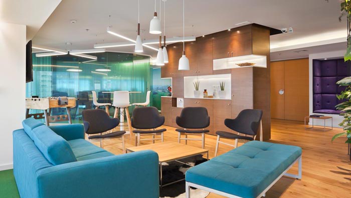 辦公區(qū)域的設(shè)計(jì):設(shè)計(jì)師在設(shè)計(jì)的時(shí)候,采用不規(guī)則的辦公布局,在設(shè)計(jì)師看來(lái)這樣的設(shè)計(jì)可以各取所長(zhǎng)、各補(bǔ)所短,在開放空間布局的同時(shí),為每一個(gè)員工打造一個(gè)屬于自己的私人空間,不規(guī)則所打造的辦公空間,讓空間充滿了活力。
