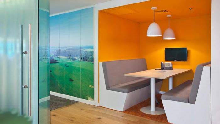 會(huì)議室的設(shè)計(jì):設(shè)計(jì)師在設(shè)計(jì)的時(shí)候,將其安置在靠近窗戶的空間區(qū)域中,在設(shè)計(jì)師看來(lái)會(huì)議是企業(yè)發(fā)展所不可替的,但是設(shè)計(jì)師希望可以改變會(huì)議室給人枯燥、無(wú)味的感覺,故此設(shè)計(jì)師將采光、室外景色通過(guò)設(shè)計(jì)的手法將其引入室內(nèi),讓會(huì)議變得有趣起來(lái)。