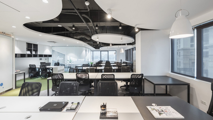 辦公區域的設計:此處設計師采用一分為二的果斷手法,目的就是為了減少空間的復雜性,在設計師看來小空間的設計,就是要盡量的簡單化,這樣做最大的好處就是讓空間有更多的可能性,設計師為了滿足企業對于辦公工位的需求,對辦公桌同樣進行了精簡,目的就是在滿足需求的同時,為員工保留足夠的活動空間。