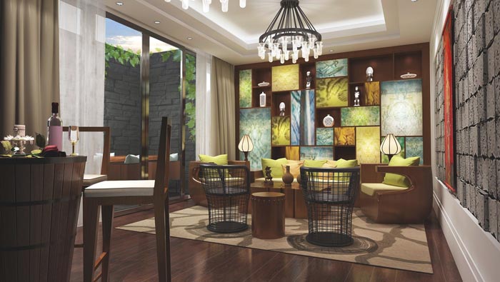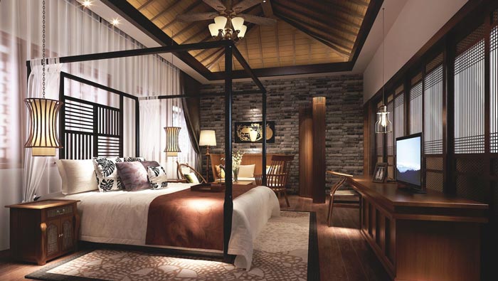 D類客房的設計:此處是為文雅之士準備的,當然夫妻、戀人都可以在此處,在設計師看來每一個人出來旅游,都不僅僅只是看風景,而是尋找心中的寧靜,故此設計師縱覽中華文化的歷史,感受到古人對于心的修煉值得我們現代人借鑒,此處的格局設計頗具古時之風。