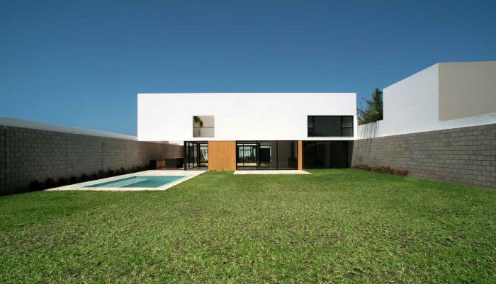 極簡別墅帶有大自然氣息,U字型的別墅設計棱角分明。在住宅中的庭院或者其他的空曠空間往往被定義為是一個等價空間,沒有一個特定的作用。不過,這樣的空間在一個景觀設計中卻是必不可少的,界限模糊的原始空間往往會被設計師們改造成不同的風格種類。