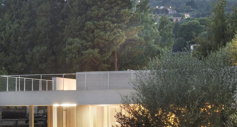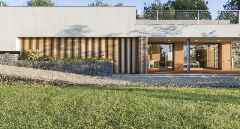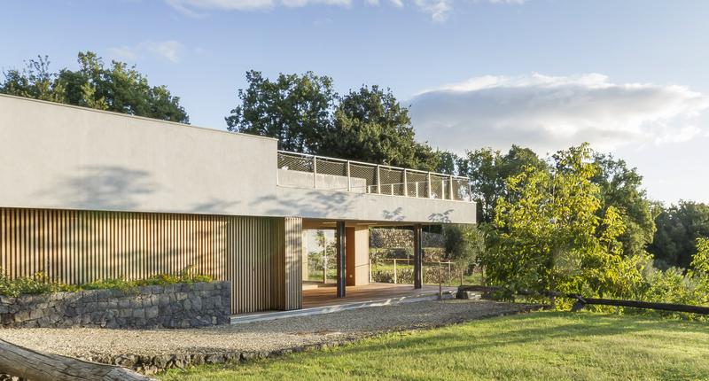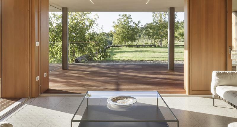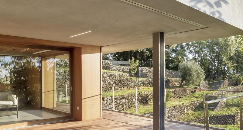 這個只有一層樓高的居住空間,有著通向自然的大窗戶,在柑橘林之間。最初的設計干預應該只包括對位于廣大農業地產中心的主住宅周圍的外部區域進行改造。除此之外,在幾十米之外,還有一個游泳池要完工,停在一個部分地下的工具棚上。有人建議加強這一看似次要的區域,并將其改造成一座外建筑,成為一個居住和招待的空間。一個親密的避難所和一個風景觀測站。建筑與自然的融合是該項目的基礎,很少有元素具有必要的設計功能,可以定義一個與周圍景觀保持強烈的視覺和物質連續性的室內空間。