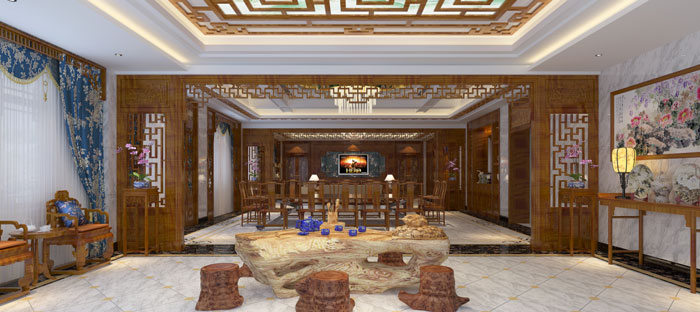 設計理念:此間會所案例主要是以名貴木材金絲楠來打造的定制會所。