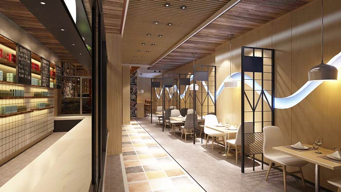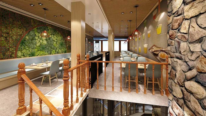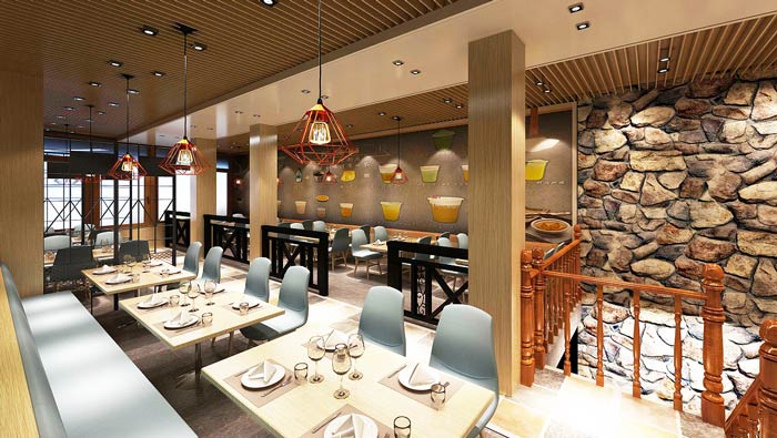 中式快餐店二樓裝飾設(shè)計(jì):二樓給人的第一感覺就是井然有序,在這樣的空間中就餐,對(duì)于客戶來說也是一種享受,設(shè)計(jì)師希望在細(xì)節(jié)上,打造屬于快餐廳自身的特色。