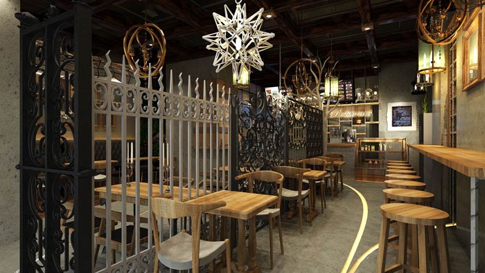 特色快餐店餐區(qū)裝修設(shè)計:餐區(qū)氛圍吧臺區(qū)【單人區(qū)】、雙人區(qū)、四人區(qū)三種模式,這是根據(jù)商業(yè)廣場客戶的屬性所決定的,這樣可以最大化的實現(xiàn)分流,以此增加餐廳的待客。