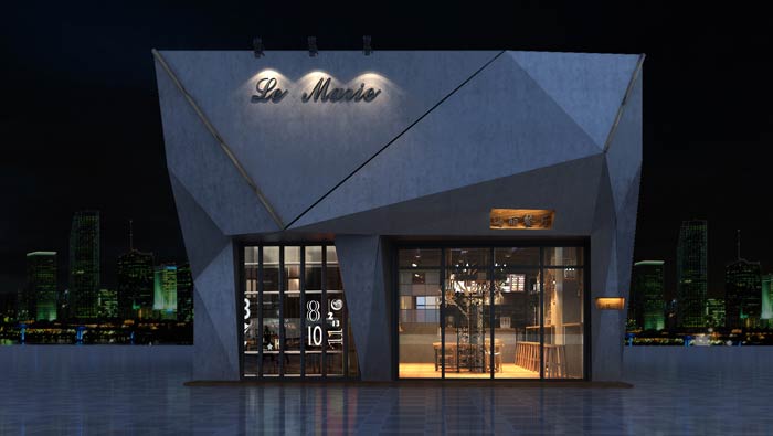 特色快餐店外立面裝修設(shè)計:異形的快餐廳外立面+銀灰色的色彩設(shè)計,讓快餐廳符合商業(yè)廣場內(nèi)的氣質(zhì),這樣的設(shè)計讓客戶愿意進(jìn)入,設(shè)計師要做的就是將設(shè)計與周圍融為一體。