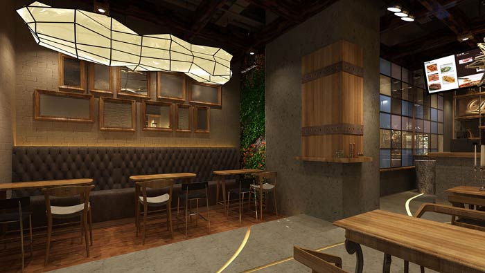 本次為特色快餐店裝修設(shè)計方案,快餐店位于商業(yè)廣場內(nèi),快餐店設(shè)計面積在200平左右,設(shè)計師結(jié)合此地段人們購買方式的特征,決定打造一個特色快餐廳設(shè)計方案,一來這樣的設(shè)計符合周圍客戶的定位,二來快餐廳也符合周圍客戶的習(xí)慣,故此特色設(shè)計+快餐廳兩者一拍即合。