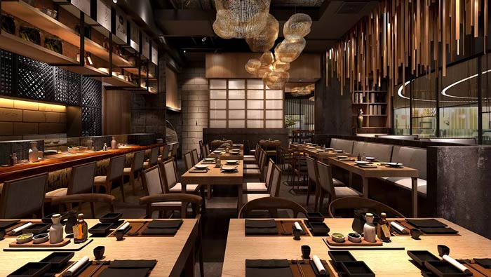 本次為日式料理餐廳裝修設(shè)計(jì)方案,在本次日式餐廳的設(shè)計(jì)中,設(shè)計(jì)師首先需要做的就是將其本土化,任何外來的東西,不經(jīng)過改變都是難以生存的,餐飲設(shè)計(jì)更是如此,故此設(shè)計(jì)師在日式餐廳的基礎(chǔ)上,進(jìn)行了調(diào)整與優(yōu)化,讓其更加實(shí)用中國市場,只有如此餐廳才能生存,才能涅槃重生。