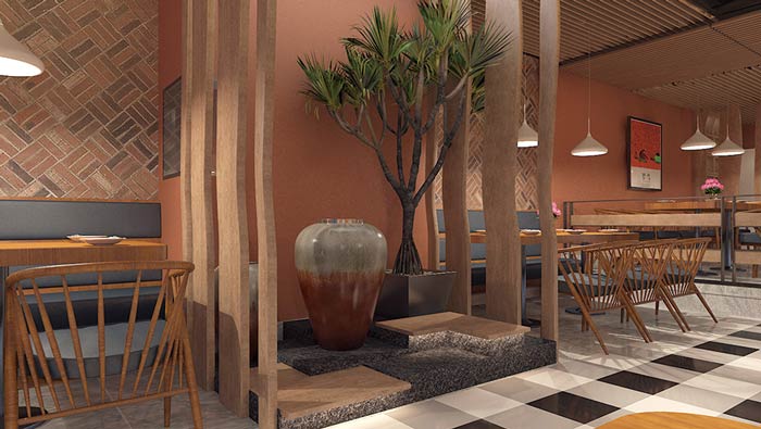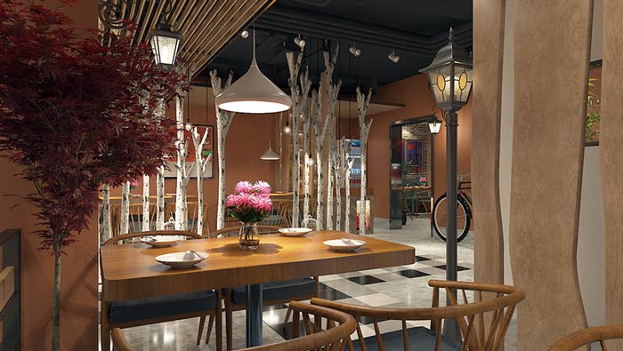 私房菜餐廳局部餐區(qū)設(shè)計(jì):中國古代對(duì)于木的運(yùn)用,可以說是登峰造極,餐桌椅代表的不僅是一種產(chǎn)品,更是一種文化的積淀,這里享受的不僅是美食,同時(shí)享受的也是一種文化。