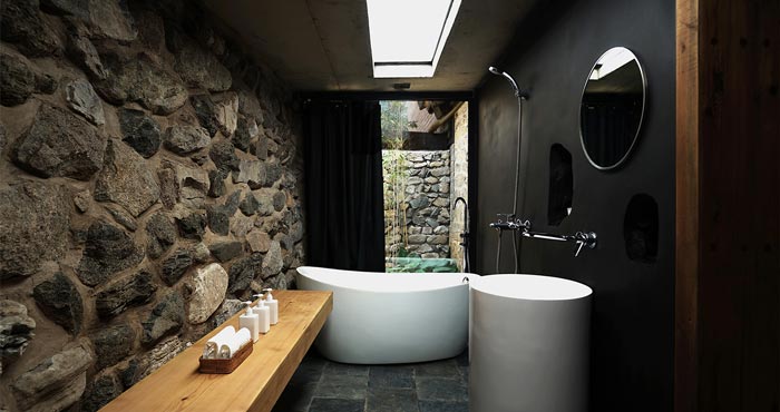 本次為農家民宿裝修設計項目,周圍群山環繞,山泉水從門口流過,設計師在設計中小心翼翼,目的就是調和設計與環境的互補關系。