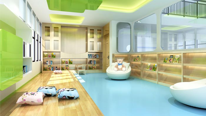 閱讀區域的設計:在這里有著各種各樣的圖畫,孩子們可以在這里欣賞到自己喜歡的各種各樣的書籍,讓孩子們從小養成獨立學習的習慣,設計師在設計中,特別強調隨意、自然,故此在設計中沒有規定座椅的位置,設計師希望在此處孩子們可以不受任何的干擾,做自己想做的事情。