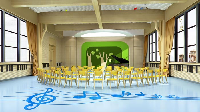 音樂教室的設計:在這里孩子們仿佛進入了音樂的世界,在這里孩子們可以翩翩起舞,音樂最是能夠打動每個人,設計師希望孩子們在載歌載舞之中,可以釋放自己的天性,讓音樂喚醒孩子們天真爛漫的個性,讓孩子們在學習的過程中可以一直保持初心。