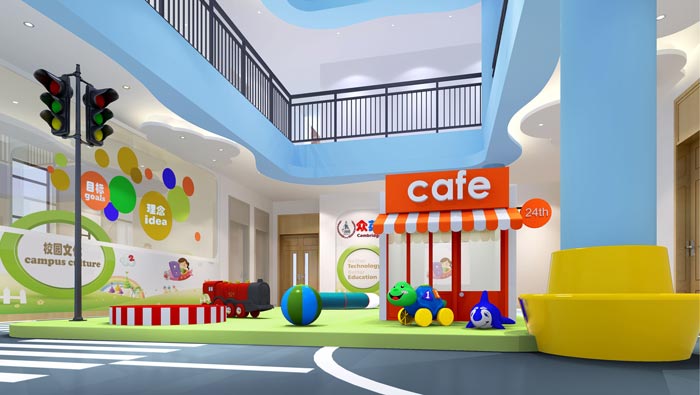 大廳的設計:對于小朋友來說,在沒有比玩耍更好玩的事情了,故此設計師在設計的時候,首先需要做的就是更換一個思路,一切都要從孩子的角度去考慮,只有這樣才能打造出適合孩子成長的學習空間,當孩子和父母進入空間之后,自然的氣息撲面而來,在設計師看來環境對于孩子的成長至關重要。