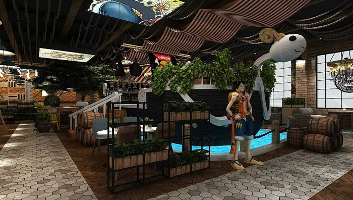 本次海賊王主題餐廳裝修設計方案講解到此結束,每個人小時候都會有冒險尋寶的夢想,餐廳以海賊王為主題,就是希望打造一個特色的餐廳,希望讓客戶在享用美食的同時,也可以感受到海賊王風情。