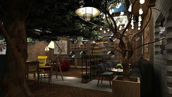 主題餐廳休閑區設計:在休閑的環境中吃飯,會增加人的食欲,此處位于空間的中心區域,整個空間的景色一覽無遺,這里的風景宜人,讓環境融入美食之中。